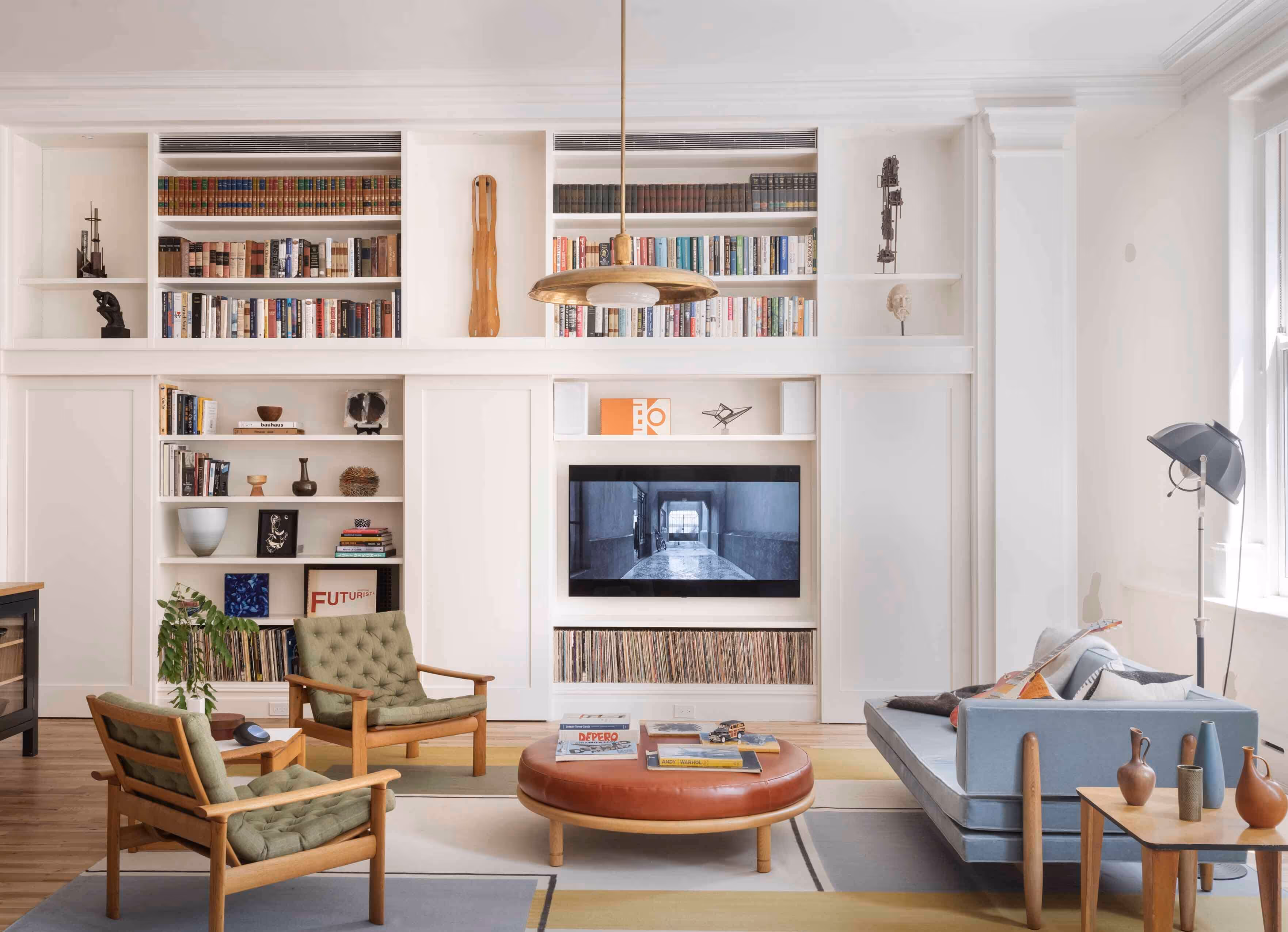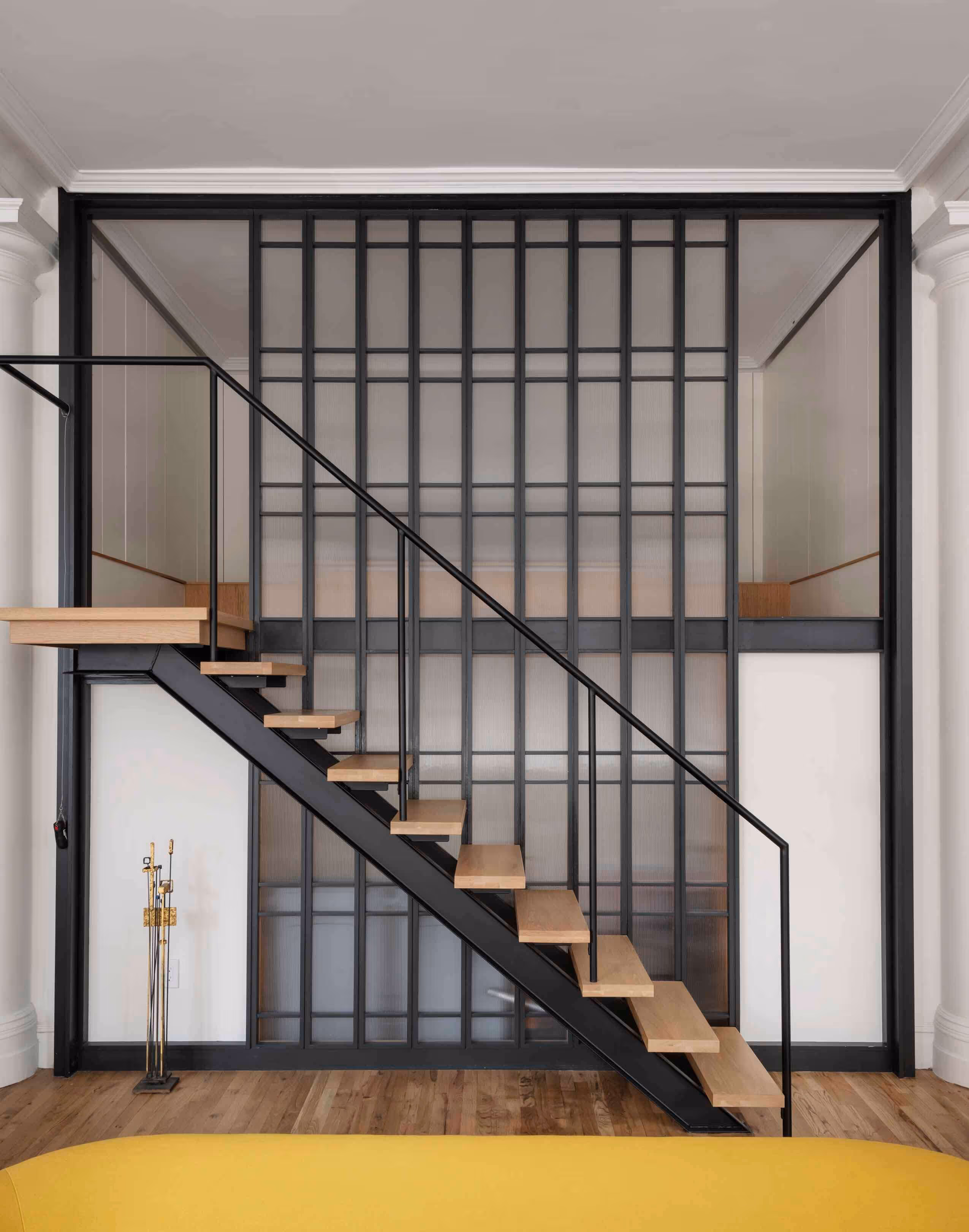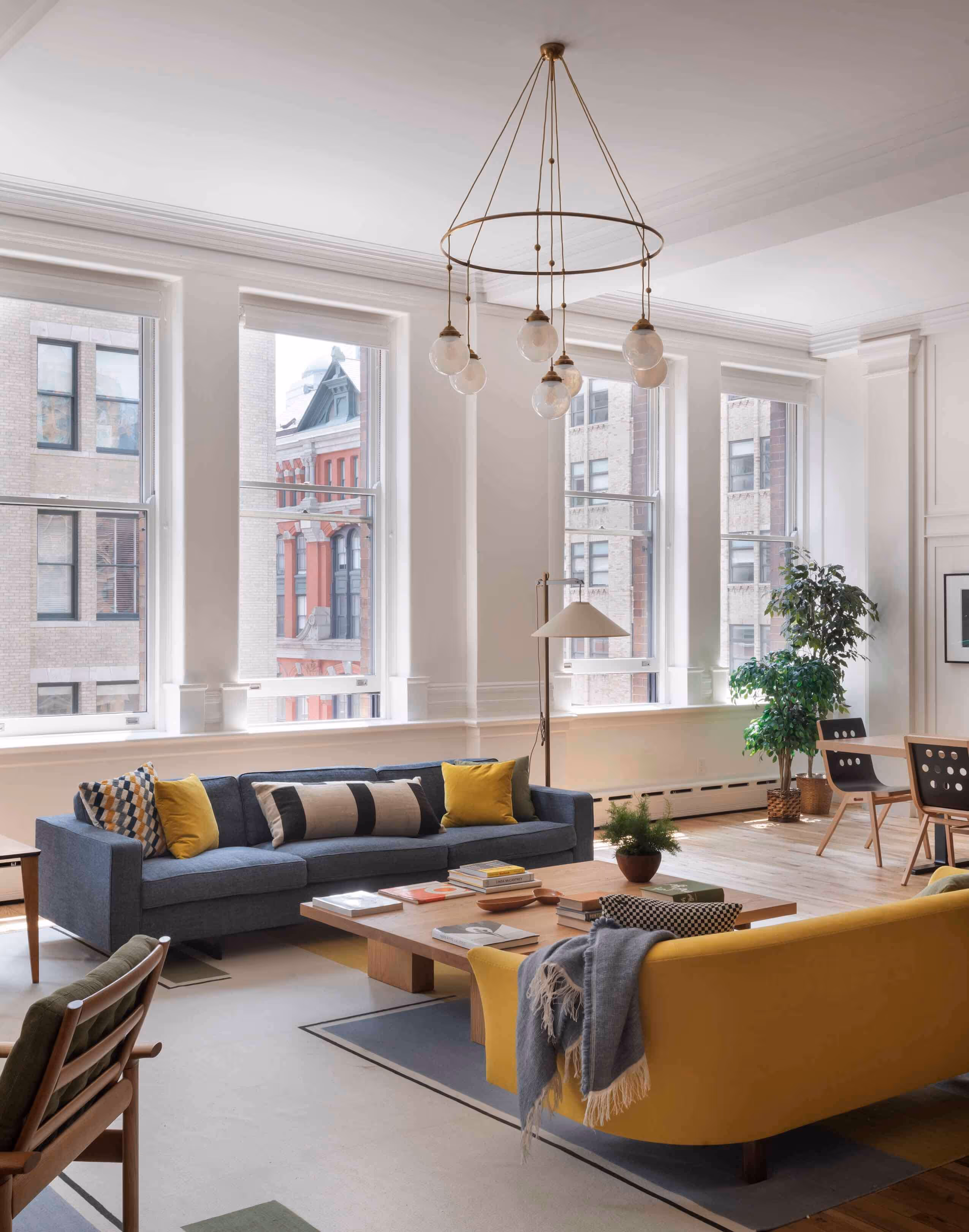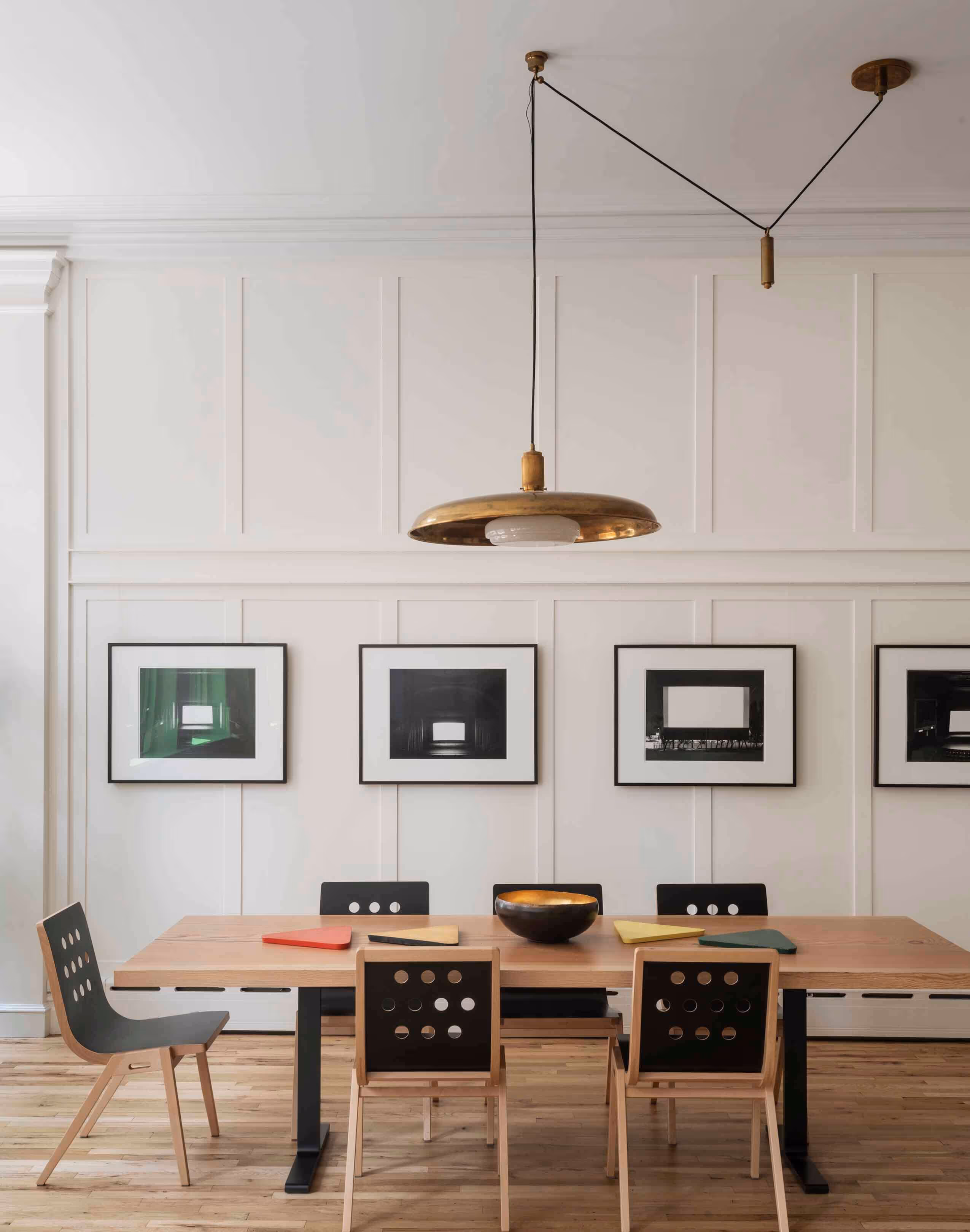 Built in 1921, Borden House, a former milk factory, still retains its old world charm. The building was converted in 1987 and most of its tenants have been slow to make significant changes. Our client, was a young trader on Wall Street when he leased, and later purchased, the unit. Over the years, he married, moved to Pennsylvania, but rarely used the apartment. His neighbor, Robert DeNiro, used the loft as a gym. Years passed and It fell into disrepair. Then, around 2018, Our client and his wife decided to spend more time in the City. They hired an architect to update the unit. He created a box within a box format; Our client's passed. The second architect ended up doing the same basic plan and they grew frustrated. Finally, he brought in Jayne and Joan Michaels of 2Michaels. Jeff English, a frequent collaborator of 2Michaels, was brought in to “crack the code”, creating two upstairs bedrooms, a large kitchen, living and dining area. The gut renovation took one and half years. Throughout the process, 2Michaels insisted on maintaining the integrity of the loft's original character. Inspired by the Bauhaus movement and 1920’s design, they created a fresh take on early modernism. Black and White photos in the dining area "Theatre" by Hiroshi Sugimoto.